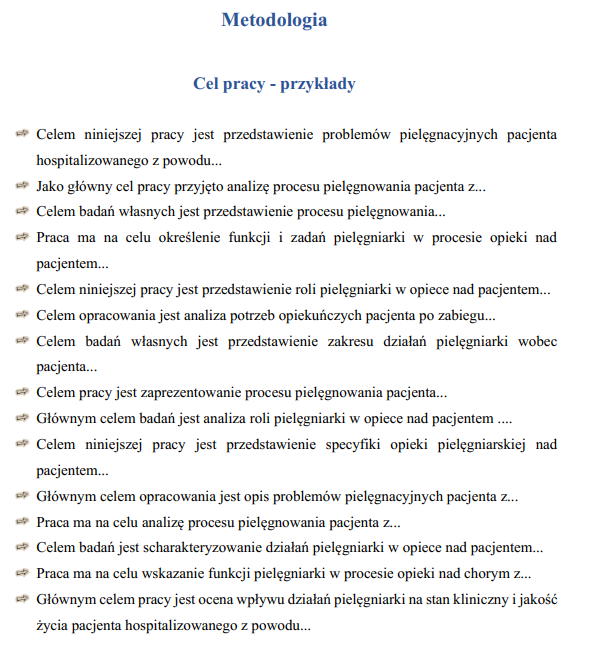 💉 Przykładową metodologię – cele, problemy badawcze, narzędzia i techniki badawcze,