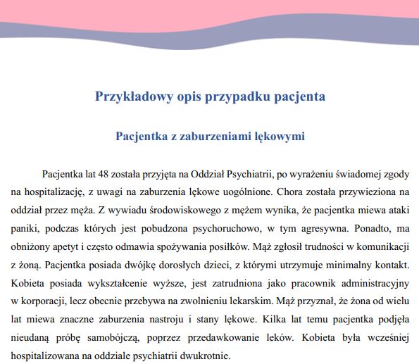 💉 Przykładowe opisy przypadku pacjenta – z cukrzycą typu II, rakiem piersi, zaburzeniami lękowymi, z wyłoniona stomią jelitową i nadciśnieniem tętniczym,