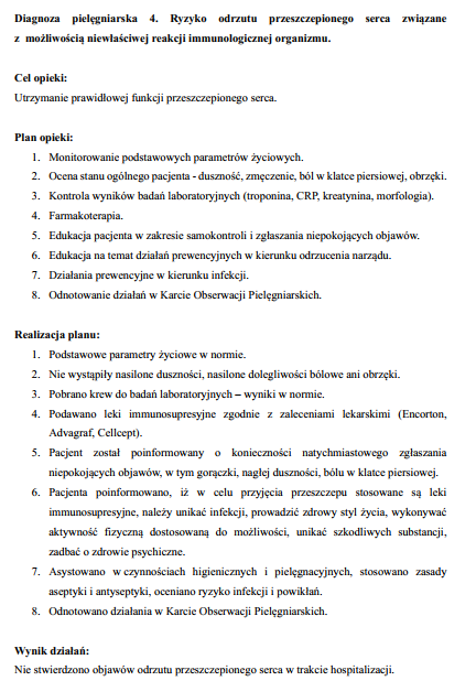 ✔️przykładowy opis przypadku pacjenta po zabiegu przeszczepienia serca – 5 stron,