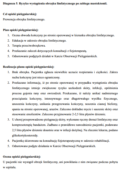 ✔️ Przykładowy opis przypadku pacjentki z rakiem piersi poddanej zabiegowi mastektomii z jednoczasową rekonstrukcją piersi (5 stron),